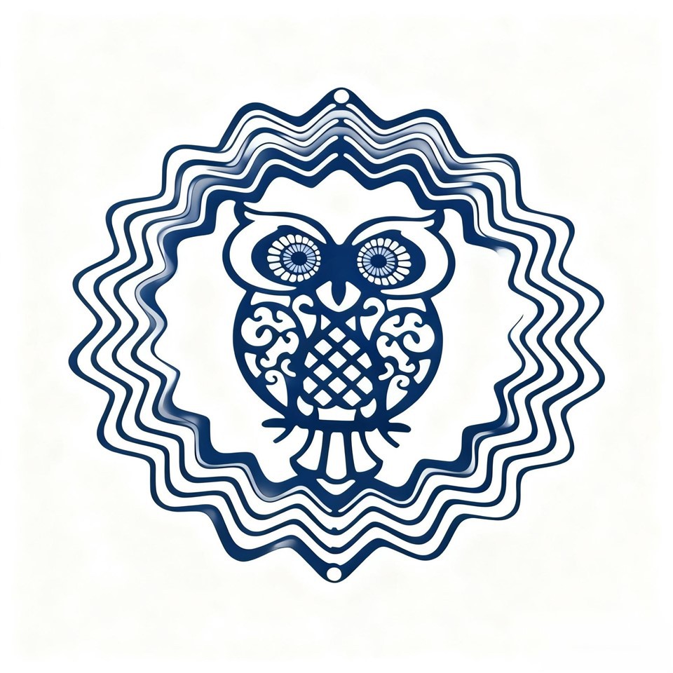 Ово је метални привезак за ветар са шаром сове. Облик сове је изврстан, украшен шарама и окружен вишеслојном кружном структуром у облику таласа. Овај ветробран се обично може окачити у двориштима, балконима и другим местима, а ротирати ће се када ветар дува, додајући декорацију и забаву. Може се користити и као украсни привезак за унутрашња врата и прозоре.